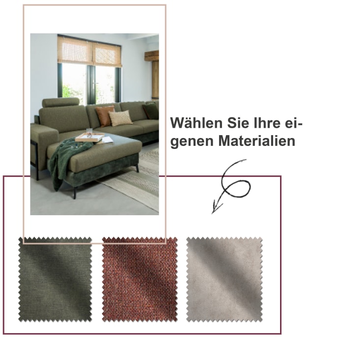 Was die Stoffe betrifft, so können Sie diese leicht kombinieren. Probieren Sie etwas Neues aus und komponieren Sie zum Beispiel ein Sofa mit 2 verschiedenen Stoffarten. Das verleiht Ihrem Interieur Tiefe und lässt Ihr Sofa noch ein wenig edler aussehen.