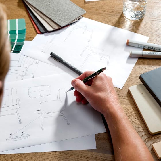 Viele unserer Möbel bestehen aus einer Kombination von hochwertigen Materialien wie Holz, Metall, HPL, Glas, Leder und Stoff. Alle Materialien werden mit Sorgfalt ausgewählt. So werden zum Beispiel unsere Stoffe ausgiebig auf ihre Benutzerfreundlichkeit getestet und das von uns verwendete Holz wird sorgfältig nach seinen besonderen Eigenschaften und seiner Nachhaltigkeit ausgewählt. Für unser Leder wählen wir Häute von höchster Qualität, die von Fachleuten verarbeitet werden. Auf diese Weise kommen die exklusiven Entwürfe unserer Designer besonders gut zur Geltung.