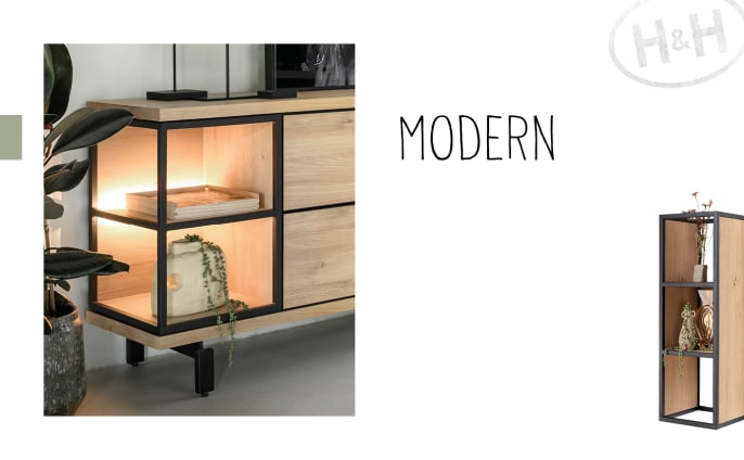 Die Ridgefield Natural-Kollektion von Henders & Hazel gehört zur Kategorie natürlicher Wohnstil. Das Eichenfurnier in dieser Kollektion mit seiner warmen Ausstrahlung spielt dabei eindeutig die Hauptrolle. Die schwarzen Metallgriffe und Rahmen sind klein aber fein. Sie dominieren nicht, sondern sind schöne Akzente, die gut mit dem hellen Holz kontrastieren und der Kollektion ihren typischen Charakter verleihen.